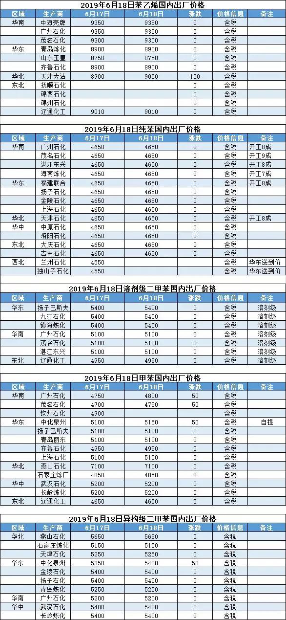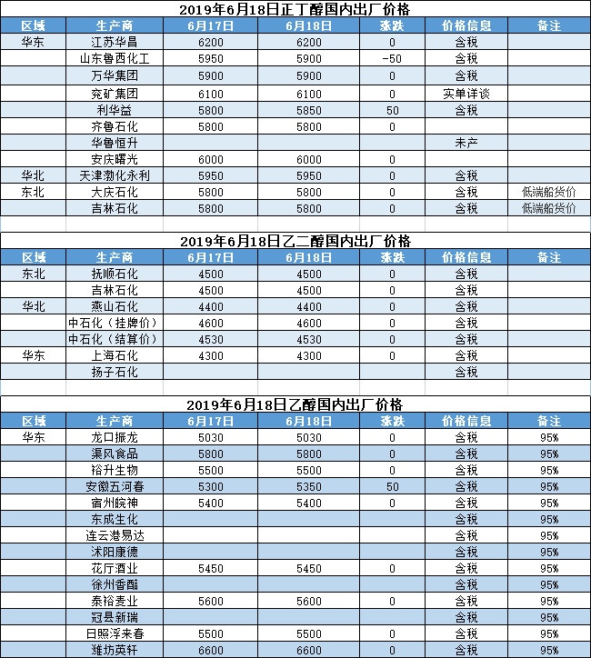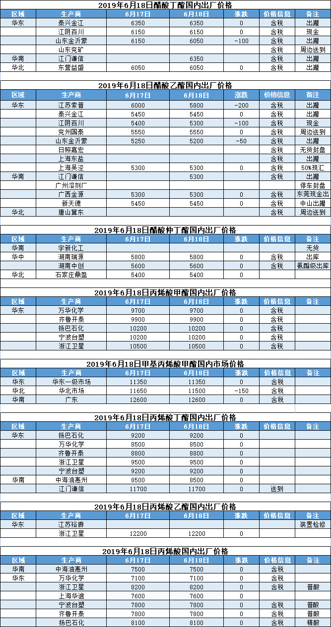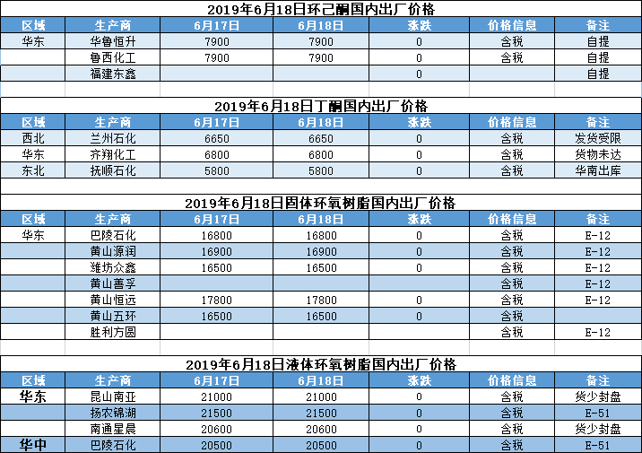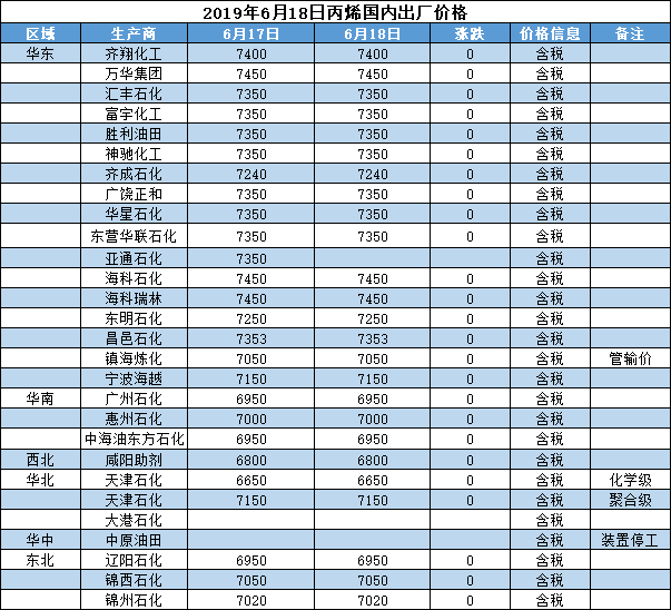 【报价】2019年6月18日国内化工原料报价及趋势