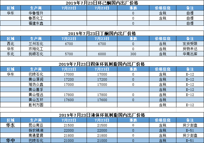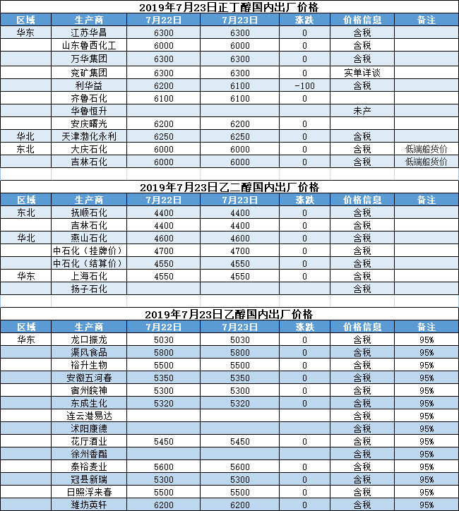 【报价】2019年7月23日国内化工原料报价及趋势