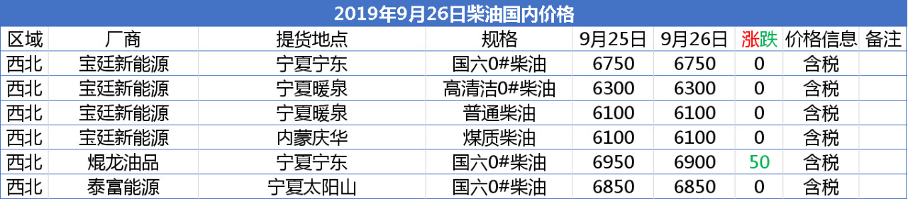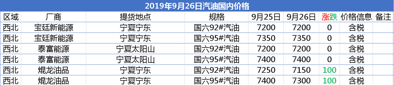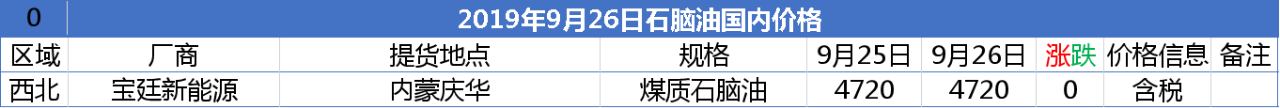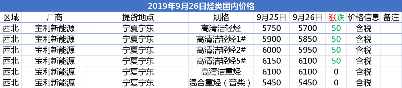 【报价】2019年9月26日部分化工产品报价