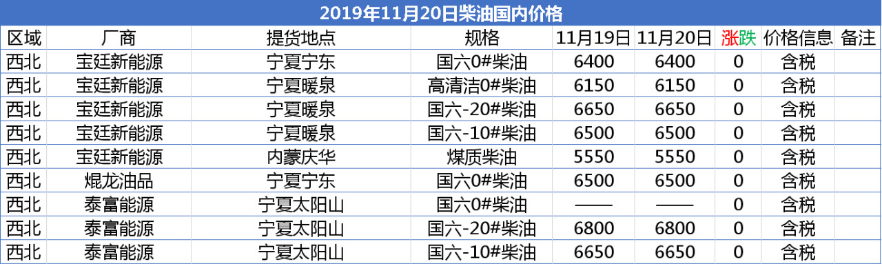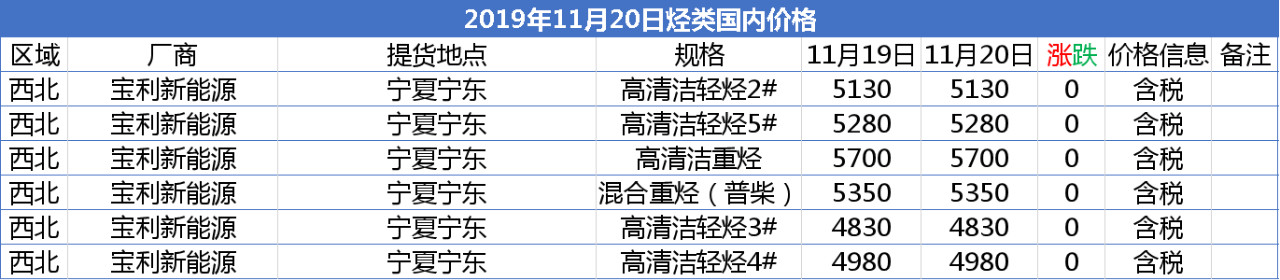 【报价】2019年11月20日部分化工产品报价